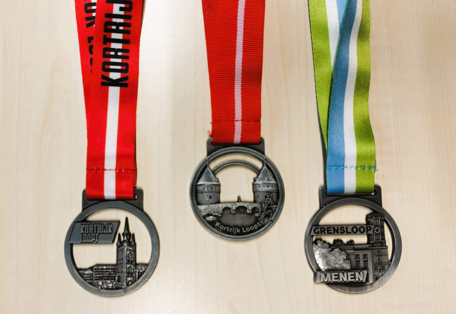 Maak van elke finish een overwinning! Laat unieke medailles ontwerpen met jouw eventnaam of logo. Verkrijgbaar in verschillende vormen, kleuren en afwerkingen.