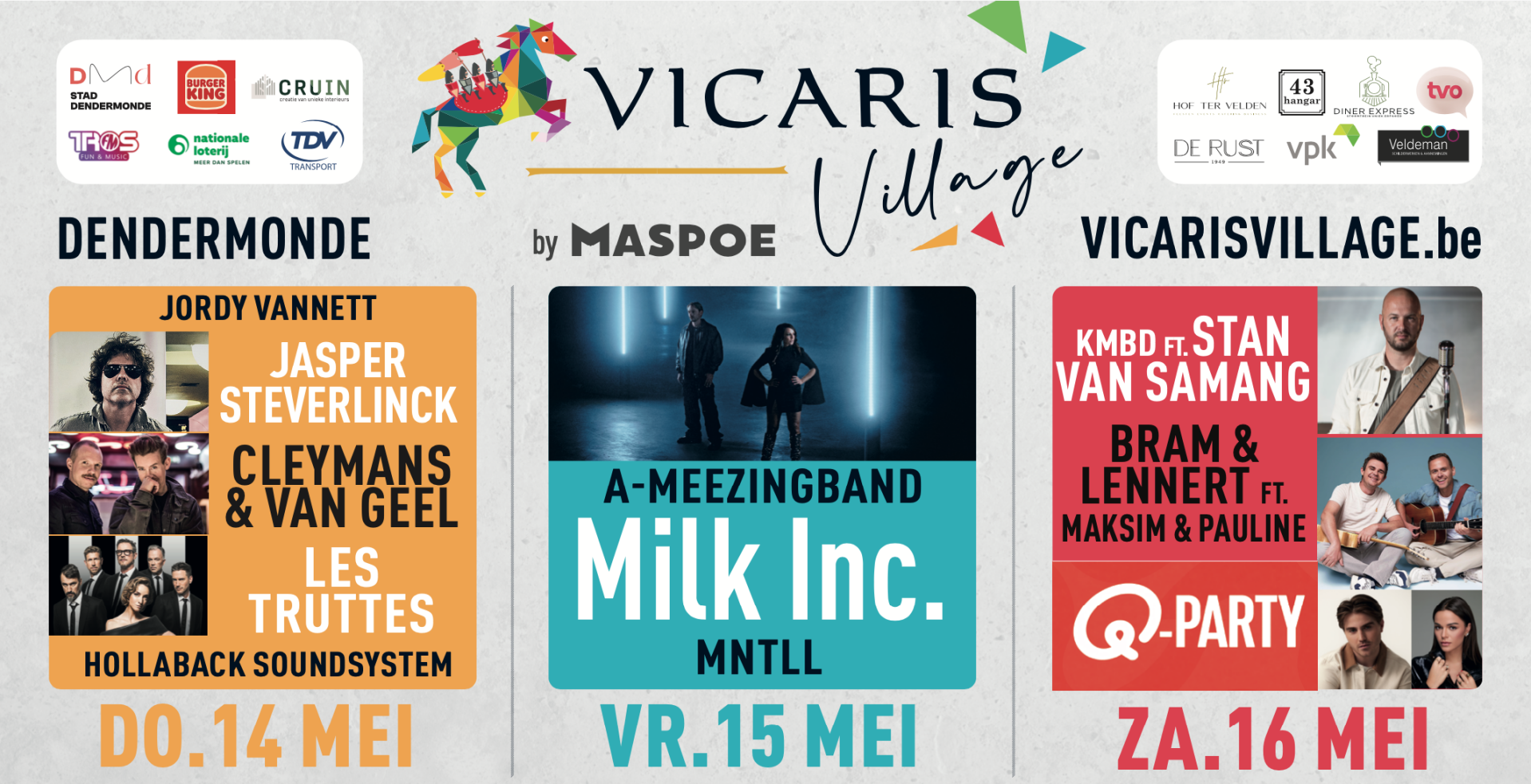 Zaterdag 16 mei = KMBD ft. Stan Van Samang, Bram & Lennert ft Maksim & Pauline & Q-party